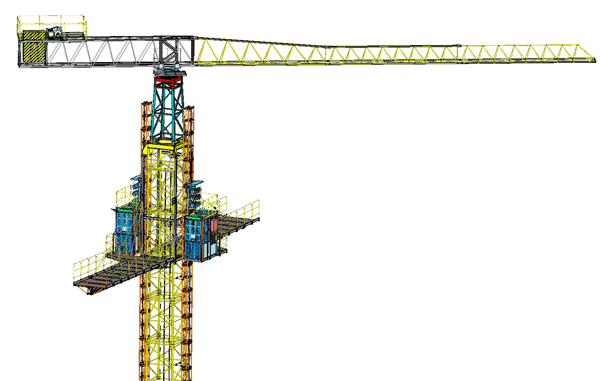 該綜合施工平臺借鑒塔機、升降機的成熟工藝和技術,成為超高煙塔和冷卻塔施工中新的施工機械。